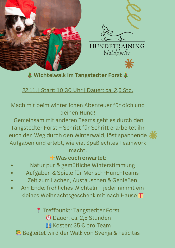 Auf unseren Social Walks in unterschiedlichen Umgebungen schaffe ich einen Raum für Dich und Deinen Hund um in der Anwesenheit von Artgenossen Sicherheit zu bekommen. Mit so viel Abstand wie nötig und soviel Nähe wie möglich erleben wir gemeinsam die Natur. Kleine Übungen stärken Eurer Miteinander und verfeinern Eure Kommunikation. Wir schauen dabei genau was die Hunde zeigen und was sie brauchen um sich wohlzufühlen.